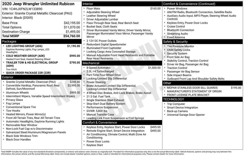 Discover the ultimate off-road companion in this meticulously maintained 2020 Jeep Wrangler Unlimited Rubicon. With its rugged 2.0L I4 DOHC engine, 8-speed automatic transmission, and legendary 4WD capabilities, this Jeep is ready to conquer any terrain you dare to explore.