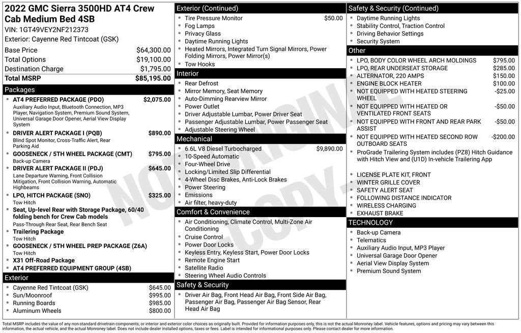 Experience the unrivaled power, capability, and premium features of the 2022 GMC Sierra 3500HD AT4. This exceptional truck is ready to take on any challenge, whether you're tackling tough job sites, exploring off-road adventures, or simply enjoying the open road. Visit our dealership today and let us show you why the Sierra 3500HD AT4 is the ultimate heavy-duty companion.