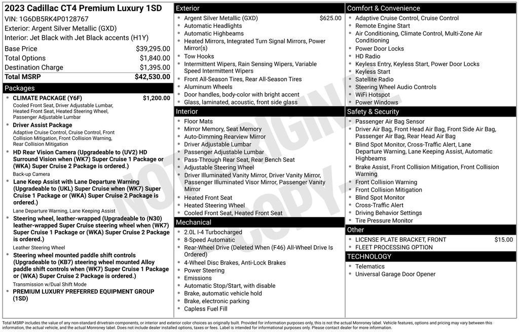 The CT4 Premium Luxury is powered by a 2.0L Turbocharged engine, delivering an impressive 23 city/34 highway MPG. Enjoy the responsiveness and control of the 8-Speed Automatic transmission with Rear-Wheel Drive.